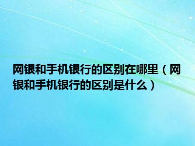 相信目前很多小伙伴对于网银和手机银行的区别是什么都比较感兴趣,那么小编今天在网上也是收集了一些与网银和手机银行的区别是什么相关的信息来分享给大家,希望能够帮助到大家哦。