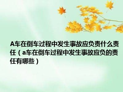 目前大家应该是对a车在倒车过程中发生事故应负的责任有哪些比较感兴趣的,所以今天CC就来为大家整理了一些关于a车在倒车过程中发生事故应负的责任有哪些方面的相关知识来分享给大家,希望大家会喜欢哦。
