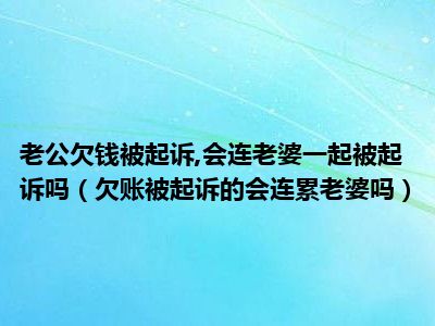 目前大家应该是对欠账被起诉的会连累老婆吗比较感兴趣的,所以今天CC就来为大家整理了一些关于欠账被起诉的会连累老婆吗方面的相关知识来分享给大家,希望大家会喜欢哦。
