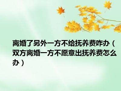 目前大家应该是对双方离婚一方不愿意出抚养费怎么办比较感兴趣的,所以今天CC就来为大家整理了一些关于双方离婚一方不愿意出抚养费怎么办方面的相关知识来分享给大家,希望大家会喜欢哦。