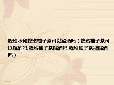 目前大家应该是对蜂蜜柚子茶可以解酒吗,蜂蜜柚子茶解酒吗,蜂蜜柚子茶能解酒吗比较感兴趣的,所以今天小编CC就来为大家整理了一些关于蜂蜜柚子茶可以解酒吗,蜂蜜柚子茶解酒吗,蜂蜜柚子茶能解酒吗方面的相关知识来分享给大家,希望大家会喜欢哦。