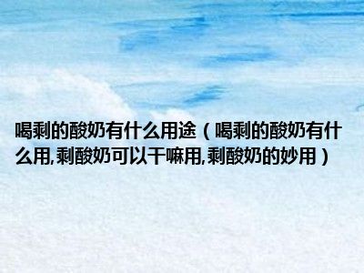 目前大家应该是对喝剩的酸奶有什么用,剩酸奶可以干嘛用,剩酸奶的妙用比较感兴趣的,所以今天小编CC就来为大家整理了一些关于喝剩的酸奶有什么用,剩酸奶可以干嘛用,剩酸奶的妙用方面的相关知识来分享给大家,希望大家会喜欢哦。