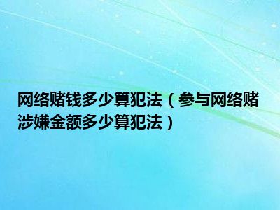 目前大家应该是对参与网络赌涉嫌金额多少算犯法比较感兴趣的,所以今天CC就来为大家整理了一些关于参与网络赌涉嫌金额多少算犯法方面的相关知识来分享给大家,希望大家会喜欢哦。