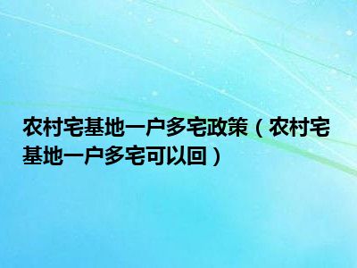 目前大家应该是对农村宅基地一户多宅可以回比较感兴趣的,所以今天CC就来为大家整理了一些关于农村宅基地一户多宅可以回方面的相关知识来分享给大家,希望大家会喜欢哦。