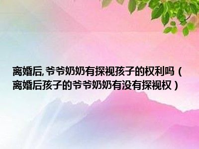 目前大家应该是对离婚后孩子的爷爷奶奶有没有探视权比较感兴趣的,所以今天CC就来为大家整理了一些关于离婚后孩子的爷爷奶奶有没有探视权方面的相关知识来分享给大家,希望大家会喜欢哦。