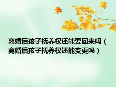 目前大家应该是对离婚后孩子抚养权还能变更吗比较感兴趣的,所以今天CC就来为大家整理了一些关于离婚后孩子抚养权还能变更吗方面的相关知识来分享给大家,希望大家会喜欢哦。