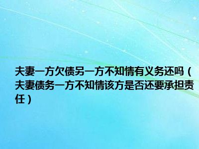 目前大家应该是对夫妻债务一方不知情,该方是否还要承担责任比较感兴趣的,所以今天CC就来为大家整理了一些关于夫妻债务一方不知情,该方是否还要承担责任方面的相关知识来分享给大家,希望大家会喜欢哦。