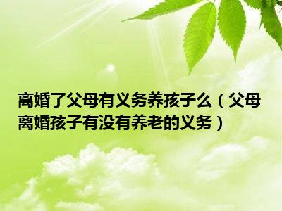 目前大家应该是对父母离婚孩子有没有养老的义务比较感兴趣的,所以今天CC就来为大家整理了一些关于父母离婚孩子有没有养老的义务方面的相关知识来分享给大家,希望大家会喜欢哦。