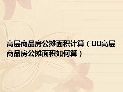 公摊面积=套内建筑面积×公用建筑面积分摊系数;高层住宅比例大约25%。套内建筑面积由以下三部分组成:①套(单元)内的使用面积,包括卧室、起居室、厅、过道、厨房、卫生间、厕所、储藏室、壁柜等分户门内面积的总和②套内墙体面积③阳台建筑面积。套内建筑面积=①+②+③=套内使用面积+套内墙体面积+阳台建筑面积。公用建筑面积分摊系数为:整栋建筑物的公用建筑面积除以整栋建筑物各套内建筑面积之和。其中,需要测量的数据需由产权部门测绘队进行实地测量。一般情况下,住宅类的商品房公摊面积大致在10%-25%左右;多层住宅的公摊面积约10%-15%;小高层住宅一般在20%以内是比较合理的水平;而30层以上的住宅因为电梯数量的增多,公摊通常都在25%左右。而酒店式公寓等高级住宅因为大厦内的公用面积偏多,公摊也有可能在40%以上的。从建筑形式上分,一般塔楼的分摊面积要大于板楼的分摊面积。