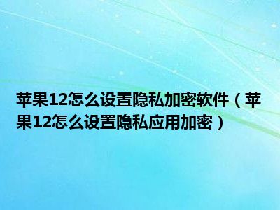 1、 苹果12怎么设置隐私应用加密