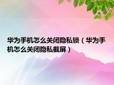 导读 1、华为手机怎么关闭隐私截屏?2、华为手机在一些涉及隐私或信息安全的界面无法截屏,这个功能无法关闭。如果一定要截图,可以用其他设备拍