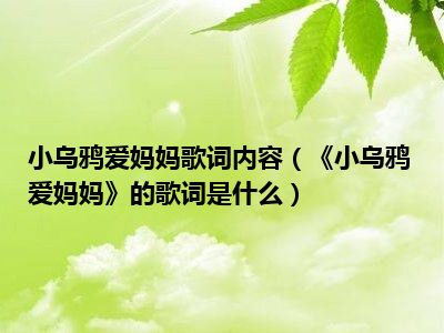 相信目前很多小伙伴对于《小乌鸦爱妈妈》的歌词是什么都比较感兴趣,那么小编今天在网上也是收集了一些与《小乌鸦爱妈妈》的歌词是什么相关的信息来分享给大家,希望能够帮助到大家哦。