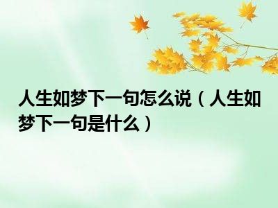 相信目前很多小伙伴对于人生如梦下一句是什么都比较感兴趣,那么小编今天在网上也是收集了一些与人生如梦下一句是什么相关的信息来分享给大家,希望能够帮助到大家哦。