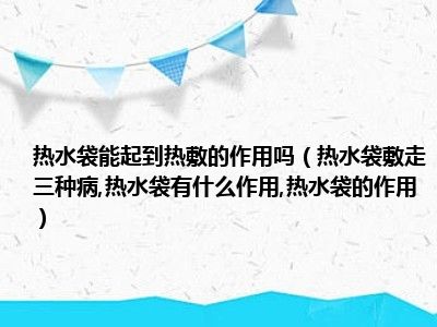 目前大家应该是对热水袋敷走三种病,热水袋有什么作用,热水袋的作用比较感兴趣的,所以今天小编CC就来为大家整理了一些关于热水袋敷走三种病,热水袋有什么作用,热水袋的作用方面的相关知识来分享给大家,希望大家会喜欢哦。