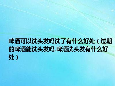 目前大家应该是对过期的啤酒能洗头发吗,啤酒洗头发有什么好处比较感兴趣的,所以今天小编CC就来为大家整理了一些关于过期的啤酒能洗头发吗,啤酒洗头发有什么好处方面的相关知识来分享给大家,希望大家会喜欢哦。