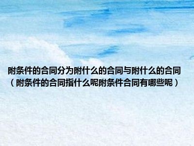 目前大家应该是对附条件的合同指什么呢,附条件合同有哪些呢比较感兴趣的,所以今天CC就来为大家整理了一些关于附条件的合同指什么呢,附条件合同有哪些呢方面的相关知识来分享给大家,希望大家会喜欢哦。