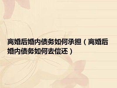 导读目前大家应该是对离婚后婚内债务如何去偿还比较感兴趣的,所以今天CC就来为大家整理了一些关于离婚后婚内债务如何去偿还方面的相关知识来分...