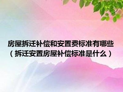 目前大家应该是对拆迁安置房屋补偿标准是什么比较感兴趣的,所以今天CC就来为大家整理了一些关于拆迁安置房屋补偿标准是什么方面的相关知识来分享给大家,希望大家会喜欢哦。