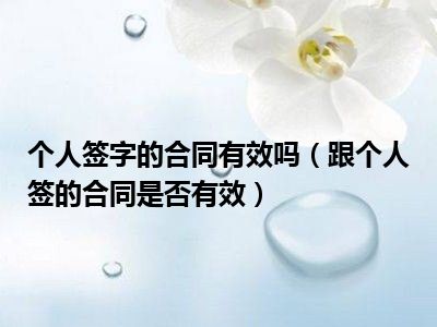 目前大家应该是对跟个人签的合同是否有效比较感兴趣的,所以今天CC就来为大家整理了一些关于跟个人签的合同是否有效方面的相关知识来分享给大家,希望大家会喜欢哦。