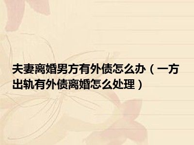 目前大家应该是对一方出轨有外债离婚怎么处理比较感兴趣的,所以今天CC就来为大家整理了一些关于一方出轨有外债离婚怎么处理方面的相关知识来分享给大家,希望大家会喜欢哦。