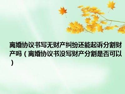 目前大家应该是对离婚协议书没写财产分割是否可以比较感兴趣的,所以今天CC就来为大家整理了一些关于离婚协议书没写财产分割是否可以方面的相关知识来分享给大家,希望大家会喜欢哦。