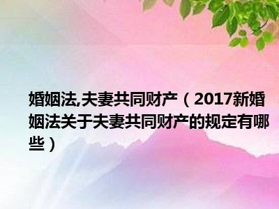 目前大家应该是对2017新婚姻法关于夫妻共同财产的规定有哪些比较感兴趣的,所以今天CC就来为大家整理了一些关于2017新婚姻法关于夫妻共同财产的规定有哪些方面的相关知识来分享给大家,希望大家会喜欢哦。