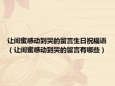 相信目前很多小伙伴对于让闺蜜感动到哭的留言有哪些都比较感兴趣,那么小编今天在网上也是收集了一些与让闺蜜感动到哭的留言有哪些相关的信息来分享给大家,希望能够帮助到大家哦。