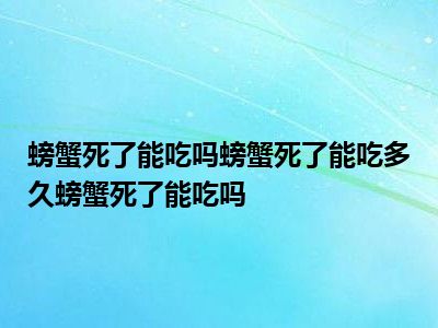 目前大家应该是对螃蟹死了能吃吗,螃蟹死了多久还能吃,螃蟹死的能吃吗比较感兴趣的,所以今天小编CC就来为大家整理了一些关于螃蟹死了能吃吗,螃蟹死了多久还能吃,螃蟹死的能吃吗方面的相关知识来分享给大家,希望大家会喜欢哦。