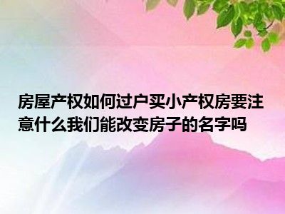 小产权过户一、基本流程。购买二手房办理产权过户,整个办理流程可以概括四个环节:“一签约,二交税,三登记,四取证”。所谓“签约”是指卖方夫妻双方和买入方同时到房屋产权监理部门签置《房地产买卖契约》,房屋成交价格需由房屋产权监理部门工作人员认定或根据评估报告确定:“交税”是指买卖双方按国家规定交纳相关税费,目前主要包括: 契税、房屋交易管理费、产权登记费;“登记”指买卖双方交纳相关税费后,买入方填写房屋所有权登记表,按照要求提交所有资料办理产权登记手续:“取证”是**后一个环节,买入方到产权监理部门领取过户完毕的新《房屋所有权证》,这时整个过户手续全部结束。小产权过户二、所需资料。按照产权监理部门的要求,购买二手房办理产权过户,买卖双方都需要提供个人资料。出卖方:夫妻双方身份证原件和复印件,结婚证或户口簿原件和复印件。 买入方:身份证原件和复印件。