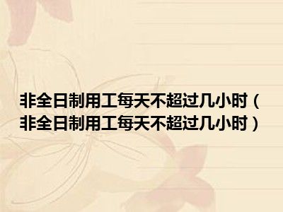 目前大家应该是对非全日制用工每天不超过几小时比较感兴趣的,所以今天CC就来为大家整理了一些关于非全日制用工每天不超过几小时方面的相关知识来分享给大家,希望大家会喜欢哦。