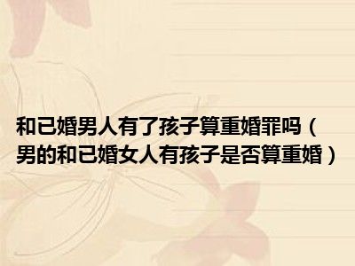目前大家应该是对男的和已婚女人有孩子是否算重婚比较感兴趣的,所以今天CC就来为大家整理了一些关于男的和已婚女人有孩子是否算重婚方面的相关知识来分享给大家,希望大家会喜欢哦。