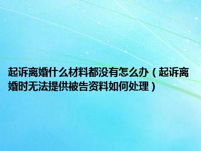 目前大家应该是对起诉离婚时无法提供被告资料如何处理比较感兴趣的,所以今天CC就来为大家整理了一些关于起诉离婚时无法提供被告资料如何处理方面的相关知识来分享给大家,希望大家会喜欢哦。