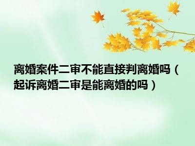 目前大家应该是对起诉离婚二审是能离婚的吗比较感兴趣的,所以今天CC就来为大家整理了一些关于起诉离婚二审是能离婚的吗方面的相关知识来分享给大家,希望大家会喜欢哦。