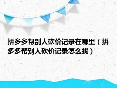 导读 1、拼多多帮别人砍价记录怎么找2、1 拼多多不能查帮别人砍价的记录,只能查帮别人砍价自己商品的记录。3、2 打开拼多多进入【个人中心】,