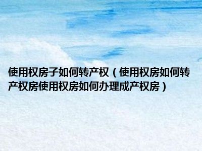 导读 目前大家应该是对使用权房如何转产权房使用权房如何办理成产权房比较感兴趣的,所以今天好房网小编CC就来为大家整理了一些关于使用权房如何