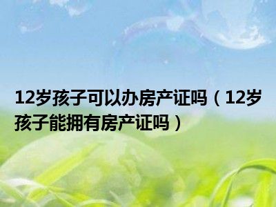 导读 目前大家应该是对12岁孩子能拥有房产证吗比较感兴趣的,所以今天好房网小编CC就来为大家整理了一些关于12岁孩子能拥有房产证吗方面的相关知