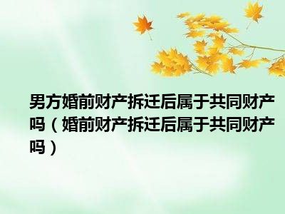 目前大家应该是对婚前财产拆迁后属于共同财产吗比较感兴趣的,所以今天CC就来为大家整理了一些关于婚前财产拆迁后属于共同财产吗方面的相关知识来分享给大家,希望大家会喜欢哦。