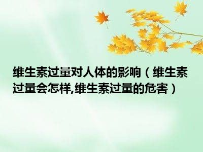 目前大家应该是对维生素过量会怎样,维生素过量的危害比较感兴趣的,所以今天小编CC就来为大家整理了一些关于维生素过量会怎样,维生素过量的危害方面的相关知识来分享给大家,希望大家会喜欢哦。