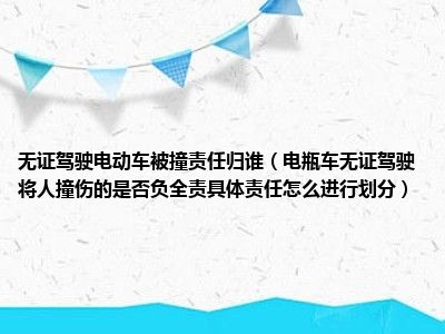 导读目前大家应该是对电瓶车无证驾驶将人撞伤的是否负全责具体责任怎么进行划分比较感兴趣的,所以今天CC就来为大家整理了一些关于电瓶车无证驾...