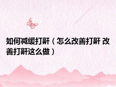 目前大家应该是对怎么改善打鼾 改善打鼾这么做比较感兴趣的,所以今天小编CC就来为大家整理了一些关于怎么改善打鼾 改善打鼾这么做方面的相关知识来分享给大家,希望大家会喜欢哦。