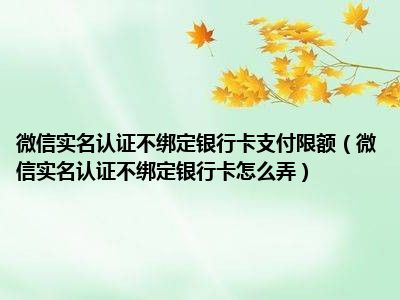 导读 1、微信实名认证不绑定银行卡怎么弄2、1 打开手机微信,在“我”页面点击【支付】。3、2 点击右上角的三点图标进入支付管理,点击【实名认