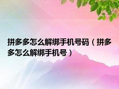 导读 1、拼多多怎么解绑手机号?2、拼多多不能解绑手机号,只支持更换绑定的手机号。为降低账户安全风险,拼多多每半年只能更换和绑定两次手机号