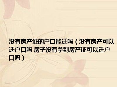 导读 目前大家应该是对没有房产可以迁户口吗 房子没有拿到房产证可以迁户口吗比较感兴趣的,所以今天好房网小编CC就来为大家整理了一些关于没有