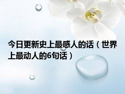 目前上述的内容应该能够为大家解答出大家对于史上最感人的话(世界上最动人的6句话)的疑惑了,所以如果大家还想要了解更多的知识内容,也可以关注本站其他文章进行了解哦。