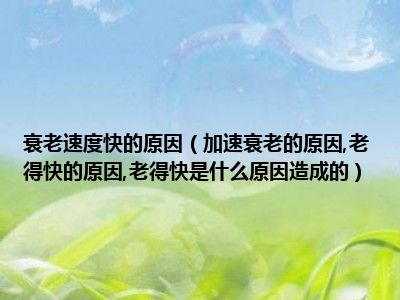 目前大家应该是对加速衰老的原因,老得快的原因,老得快是什么原因造成的比较感兴趣的,所以今天小编CC就来为大家整理了一些关于加速衰老的原因,老得快的原因,老得快是什么原因造成的方面的相关知识来分享给大家,希望大家会喜欢哦。