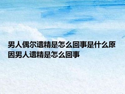 目前大家应该是对男人偶尔遗精是怎么回事,男人遗精是什么原因,男人遗精是怎么回事比较感兴趣的,所以今天小编CC就来为大家整理了一些关于男人偶尔遗精是怎么回事,男人遗精是什么原因,男人遗精是怎么回事方面的相关知识来分享给大家,希望大家会喜欢哦。