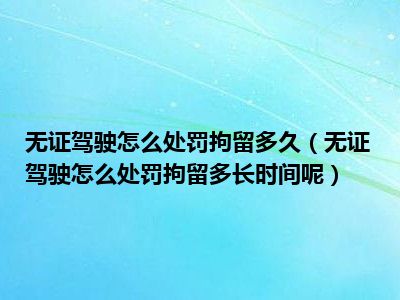 目前大家应该是对无证驾驶怎么处罚拘留多长时间呢比较感兴趣的,所以今天CC就来为大家整理了一些关于无证驾驶怎么处罚拘留多长时间呢方面的相关知识来分享给大家,希望大家会喜欢哦。