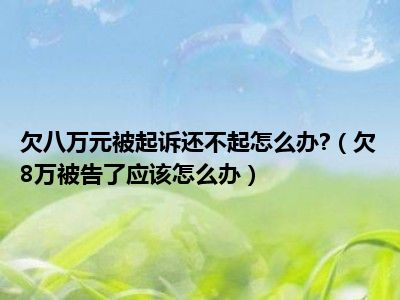 目前大家应该是对欠8万被告了应该怎么办比较感兴趣的,所以今天CC就来为大家整理了一些关于欠8万被告了应该怎么办方面的相关知识来分享给大家,希望大家会喜欢哦。
