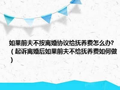 目前大家应该是对起诉离婚后,如果前夫不给抚养费如何做比较感兴趣的,所以今天CC就来为大家整理了一些关于起诉离婚后,如果前夫不给抚养费如何做方面的相关知识来分享给大家,希望大家会喜欢哦。