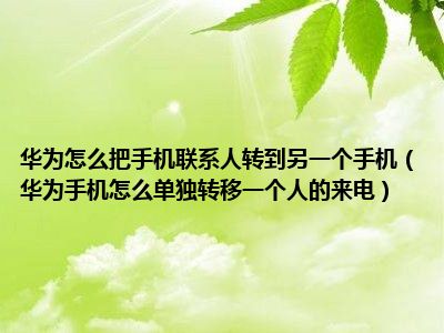 导读 1、华为手机怎么单独转移一个人的来电2、所有手机都不能设置为单独转发一个人的来电。设置呼叫转移时,可以默认为所有手机联系人设置,但可
